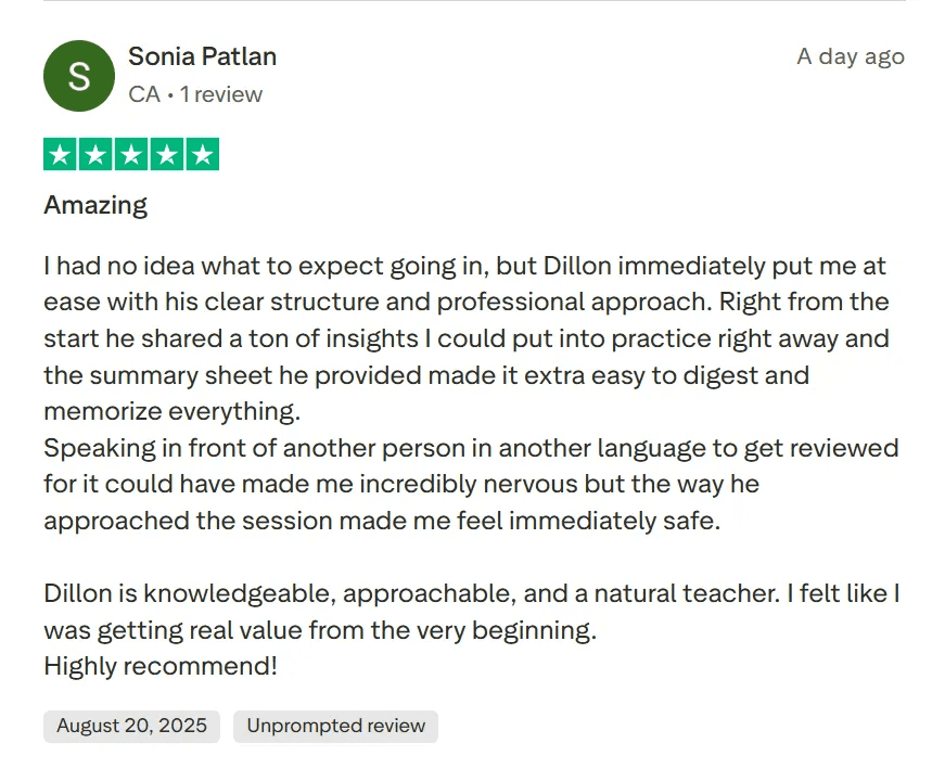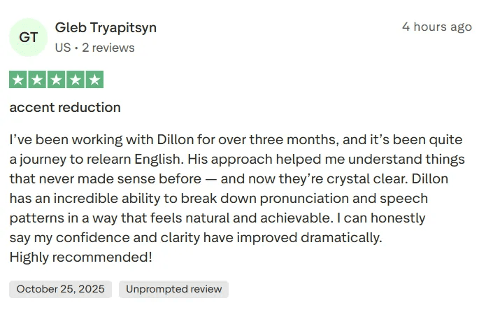 Before you join, I personally analyze your accent. Which sounds you're producing incorrectly. Which patterns create the most friction for an American audience. What your specific path to 80-90% clarity looks like You walk away with typed notes in a Google Doc plus a video/audio recording of the session. Those are yours regardless of whether you join (Assessment is normally $97 — free when you join ACCP).