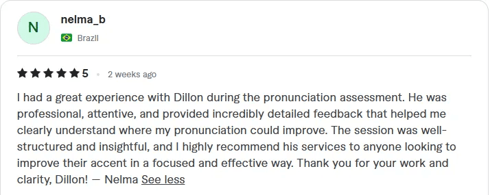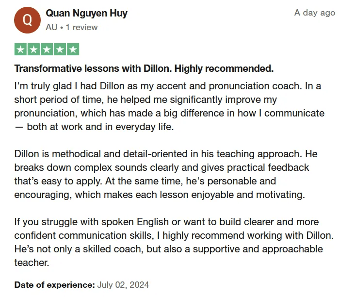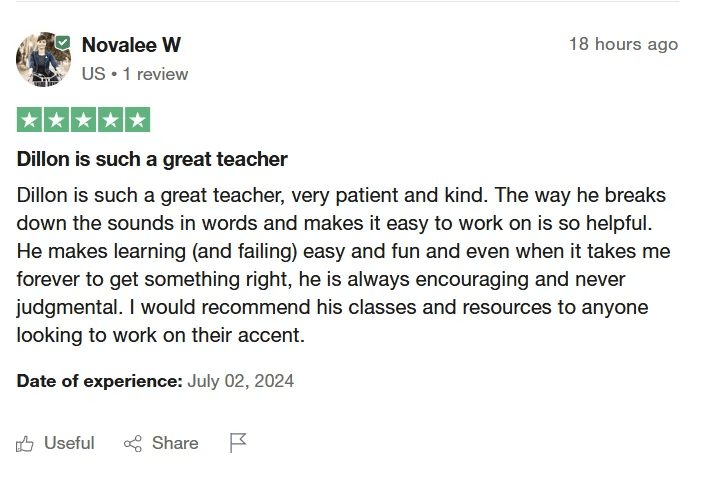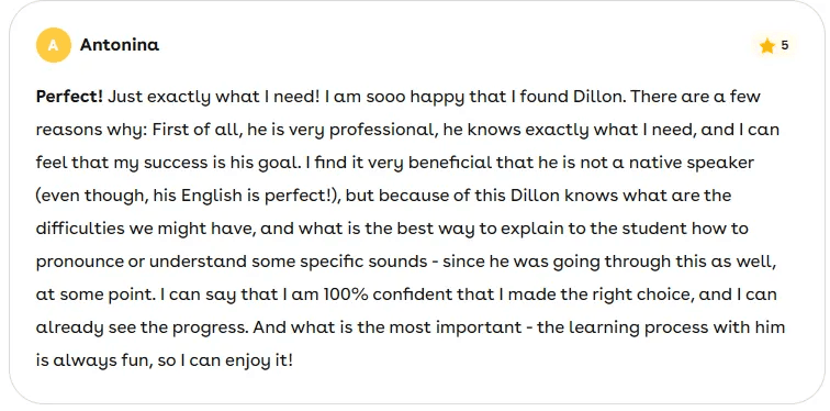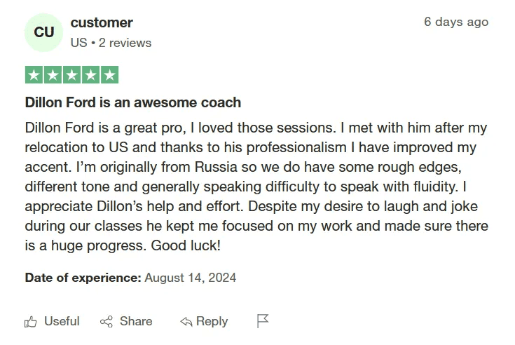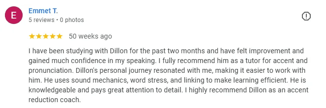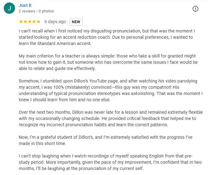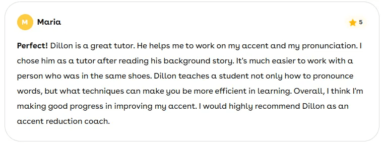 He is one of the best pronounciation tutors you can find. I like his classes is both professional and fun. Chill and relaxed. He's always ready to adjust your lesson plans to your needs. What I like most is that he is a foreigner too. He used to have an accent."