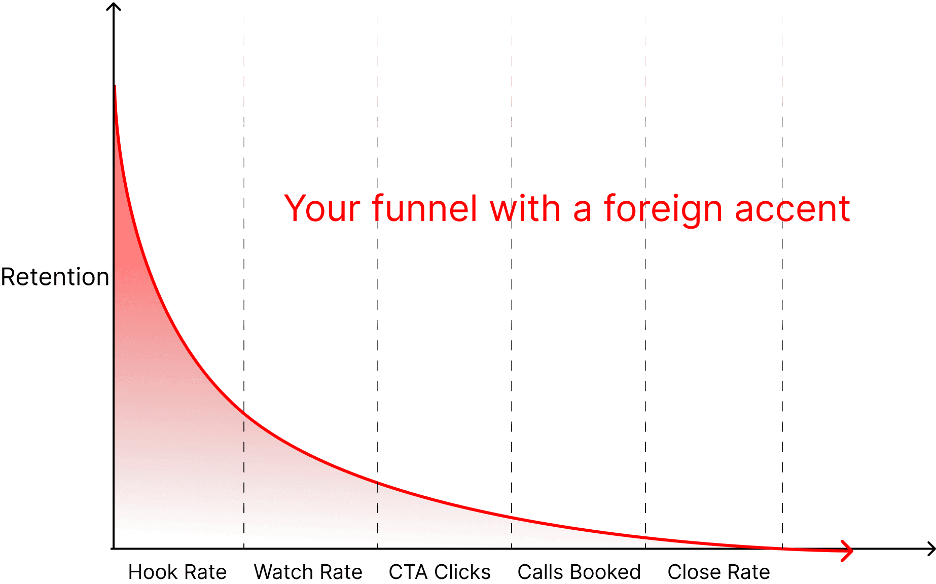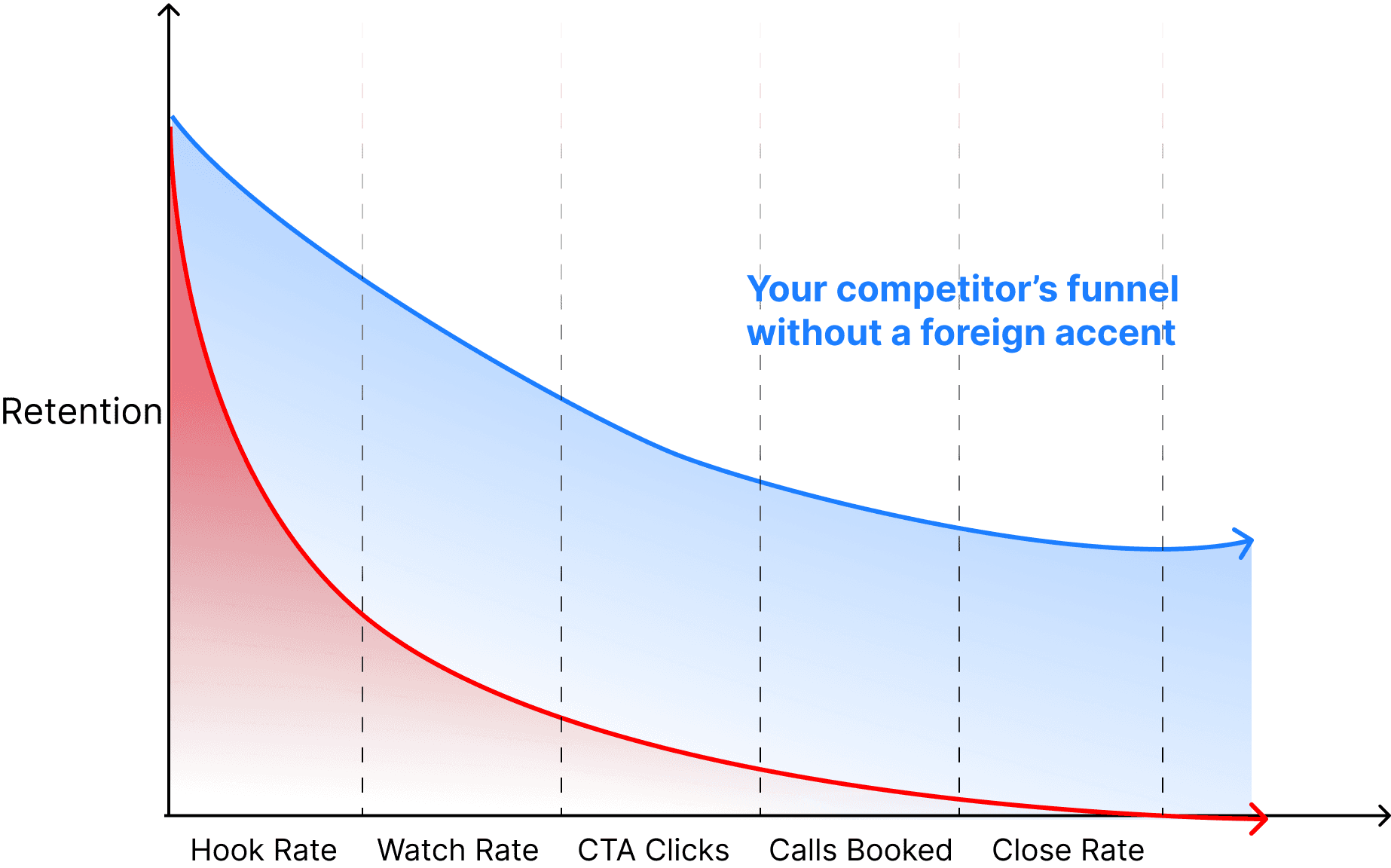 The variable your competitors don't carry disappears from every stage — hook rate, playthrough, CTA clicks, calls booked, close rate. Same content. Same offer. The bottleneck is gone.